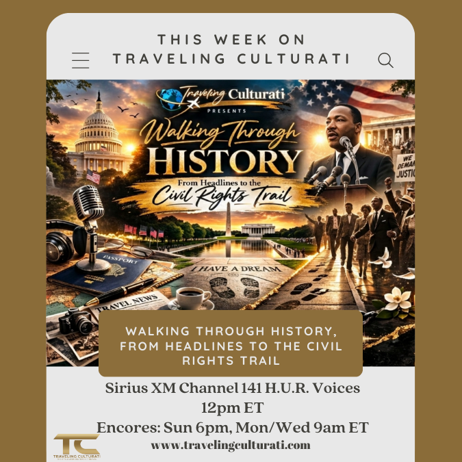 This week on Traveling Culturati, we begin with the latest in travel news shaping how and where we explore, then journey into the powerful legacy of Black history in Washington, DC with Kenneth Burns, uncovering stories that continue to define the nation’s capital. We close with Deborah Douglas as she shares insights from the second edition of the Civil Rights Trail, guiding us through transformative landmarks and the enduring impact of the movement. It’s a meaningful exploration of travel, culture, and the history that connects us all.